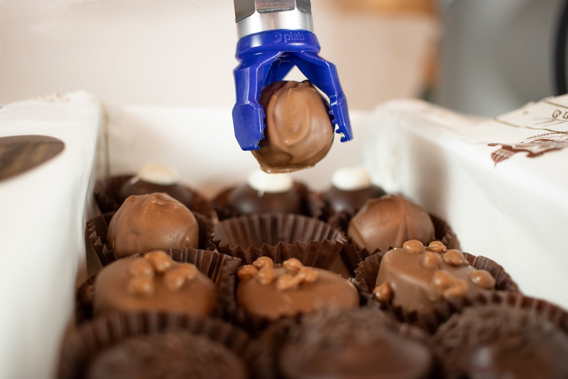 Whether it is pralines, waffle cones or hollow chocolate eggs, here is your answer. piSOFTGRIP is as adaptable in its force as a hand and yet as simple as a suction cup. The piSOFTGRIP® family, with its vacuum cavities and soft fingers, allows perfect pick-up of fragile objects such as chocolate and waffle products. Piab’s suction cups for confectionery ensure quick and efficient placing of each praline into the box.