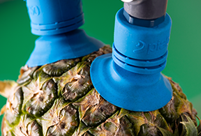 A gentle grip on any fruit from avocado to zucchini. In fruit picking, flexibility is key. You need a suction cup able to handle items with difficult, leaky textures and various shapes. Piab’s fruit cup is all this: Flexible bellows for off-axis grips and adaptation as well as multi-lip design to ensure great sealing. This allows using a smaller vacuum pump which saves energy. Secure grip on irregular surfaces with indents and protrusions thanks to the innovative multi-lip design. Keeps fruits pristine due to the gentle but firm grip achieved even with low vacuum levels. Able to adapt during moment of pick to achieve grip on fruit with varying shapes