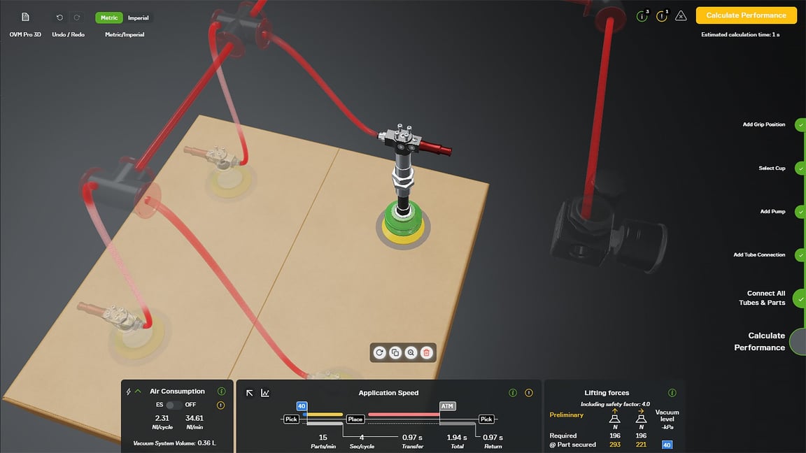 OVM Pro 3D offers you to design, test, and refine your own vacuum system in a virtual environment before physical implementation. Log in and create a unique application with Piab’s extensive range of vacuum ejector pumps, suction cups, grippers, fittings and accessories.