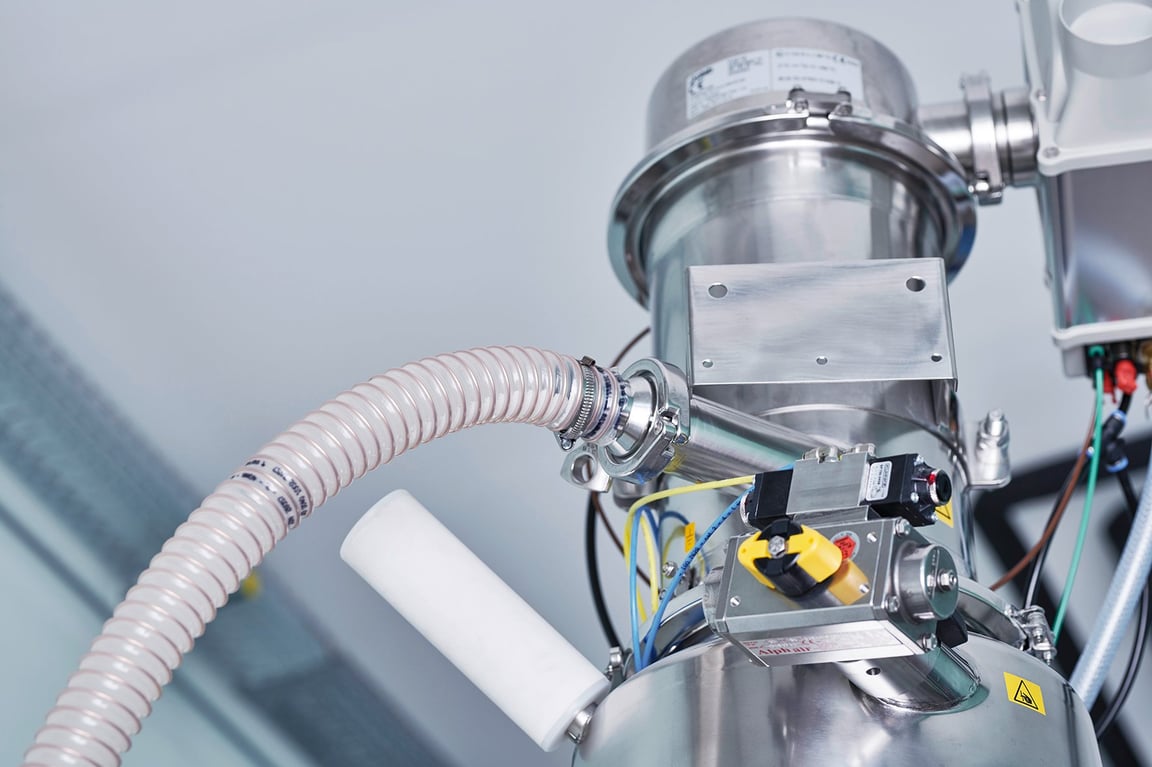 La contaminazione incrociata si verifica quando i materiali trasportati vengono esposti all'ambiente, provocando una perdita delle loro proprietà e una diminuzione della qualità del prodotto finale. Questo è particolarmente critico per i principi attivi (API), che sono sensibili ai fattori ambientali. I conveyor a vuoto di Piab, progettati per il trasporto di polveri farmaceutiche, operano in sistemi chiusi per eliminare efficacemente il rischio di cross-contamination, garantendo prodotti di alta qualità.