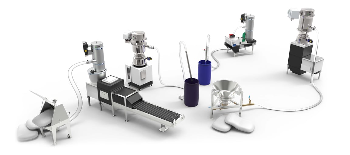 Trasporto di polveri da barili e fusti in un sistema chiuso