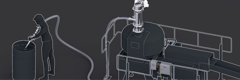 Urządzenie do transportu materiałów sypkich piFLOW®p SMART CCO firmy Piab jest odpowiedzią na potrzeby produkcji ciągłej i umożliwia pobieranie materiału, na przykład ze stanowiska opróżniania worków lub bezpośrednio z beczki, za pomocą dyszy lub rury ssawnej.