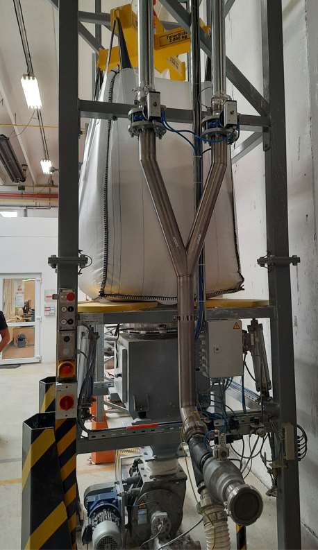 Punkt podawania ze stojakiem na worki big bag oraz podajnikiem obrotowym.